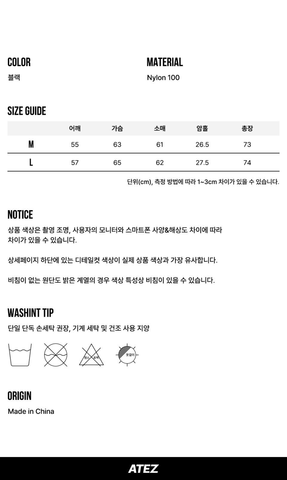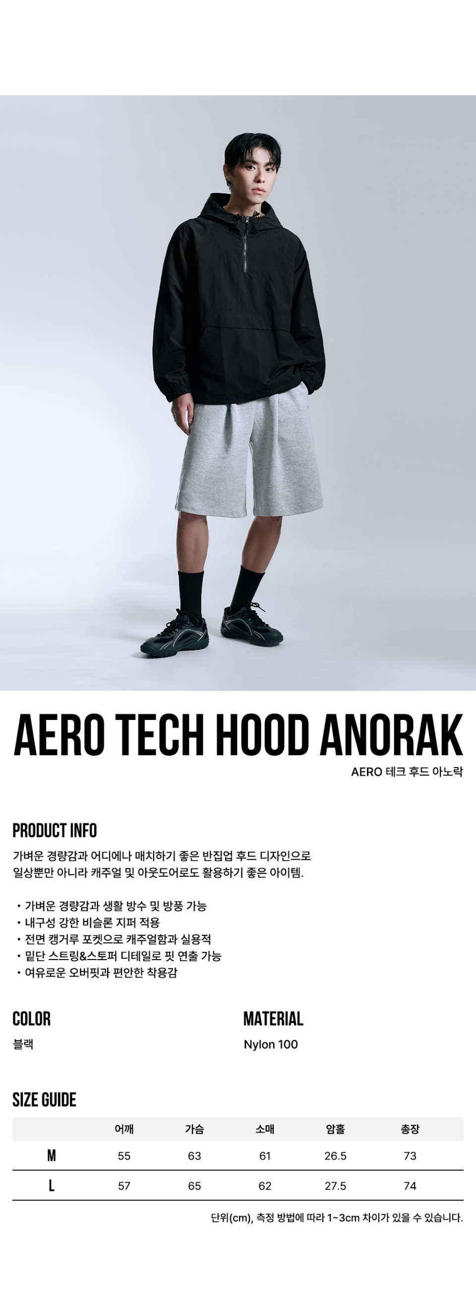 AERO 테크 후드 아노락 윈드 브레이커 [블랙]