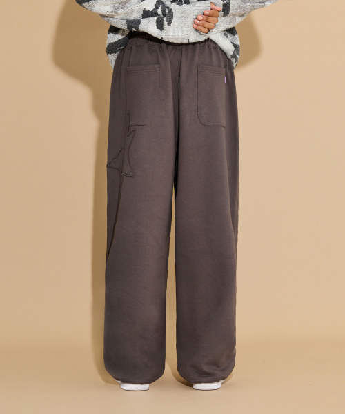 스타 아플리케 자수 스웨트팬츠 차콜