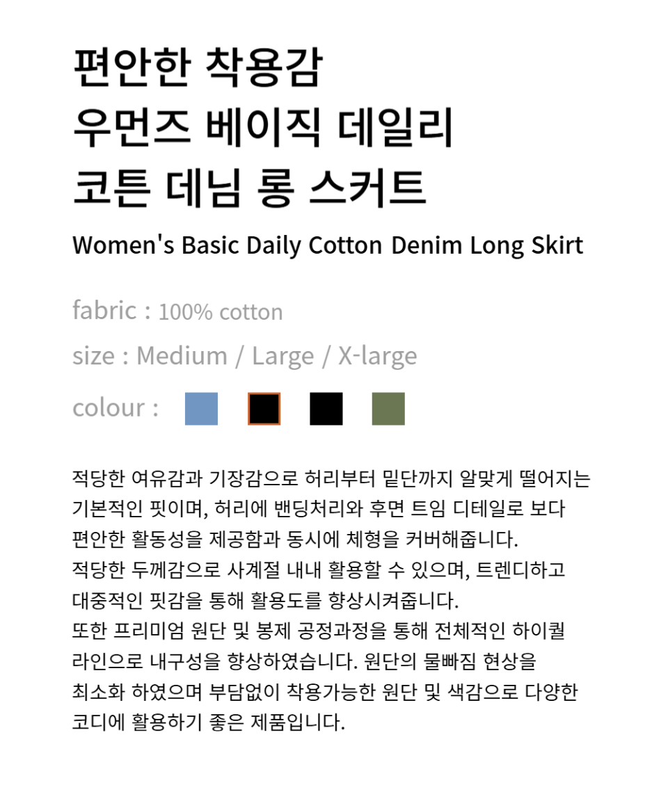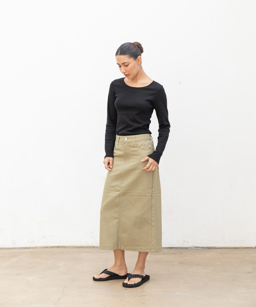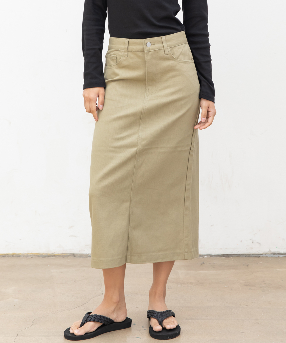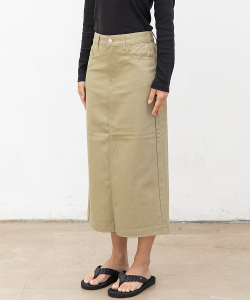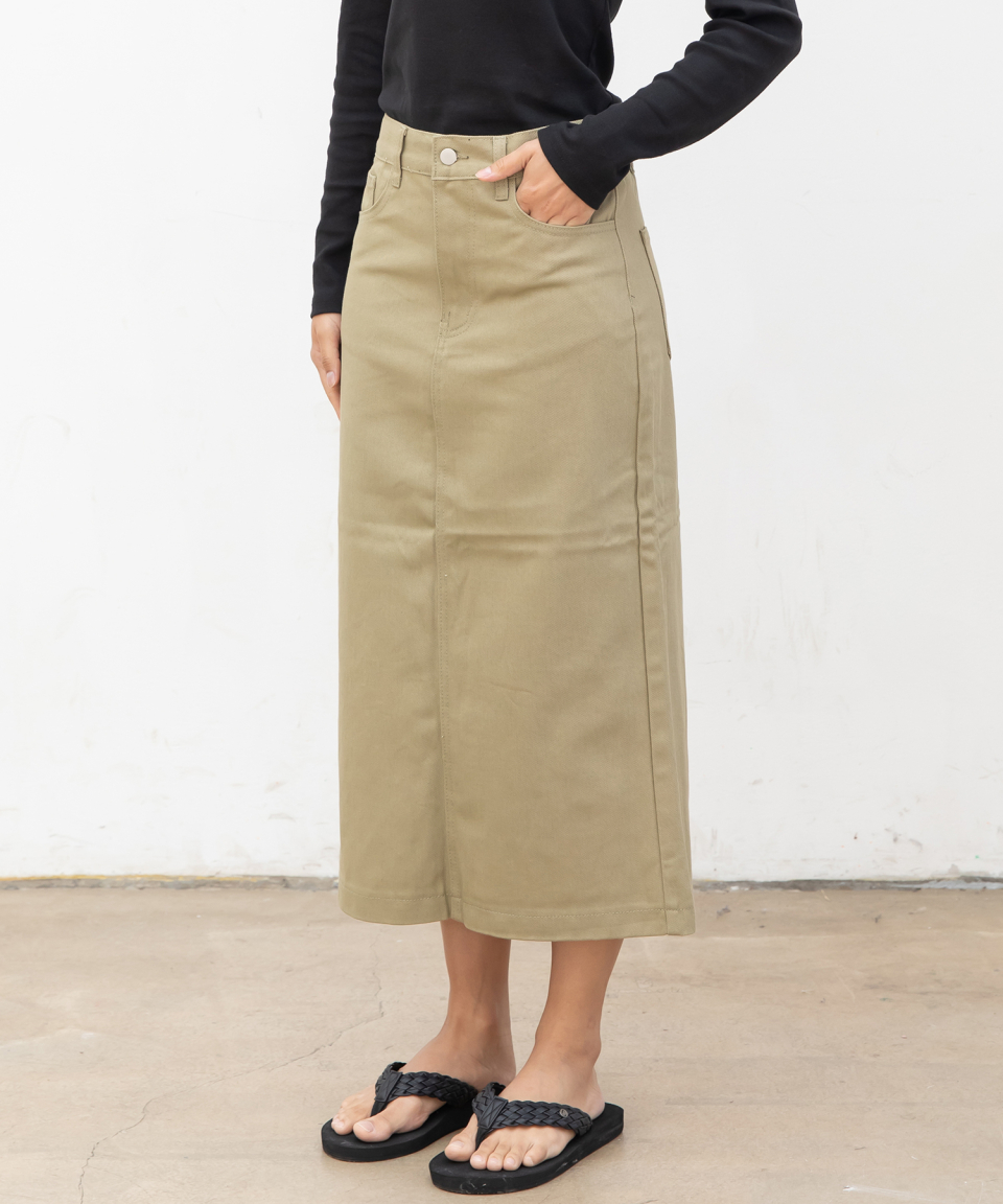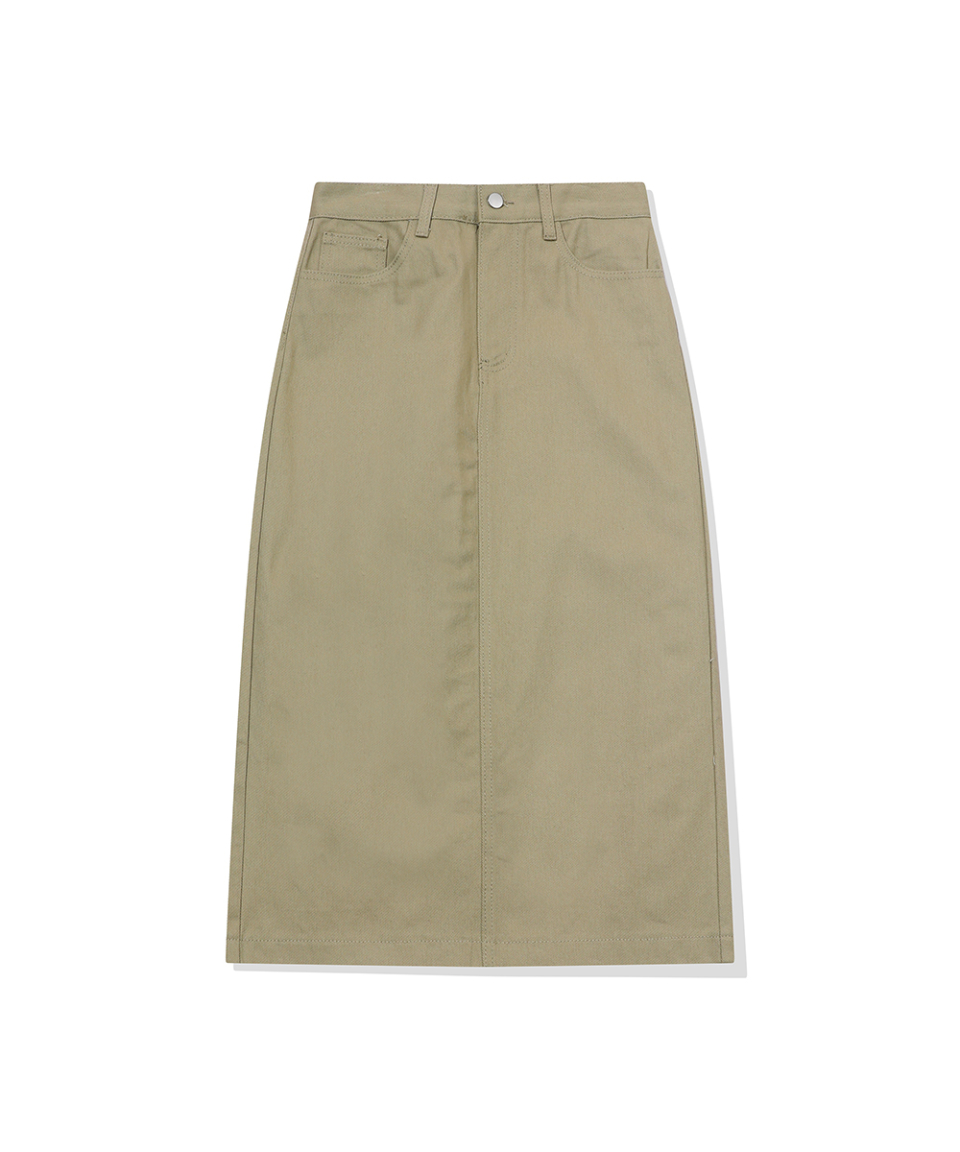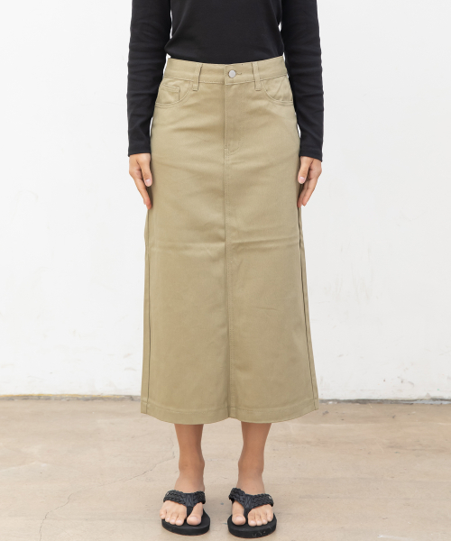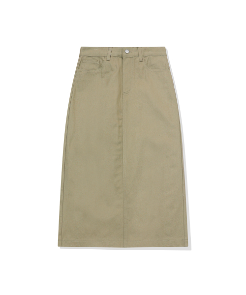 우먼즈 베이직 코튼 데님 롱 스커트[라이트카키]