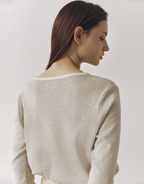 우먼즈 버티컬 텍스처 헨리 넥 긴소매 티셔츠 [그레이]