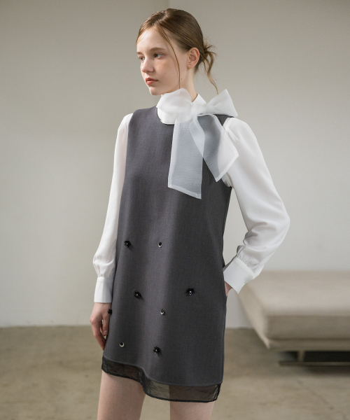 우먼즈 슬리브리스 포멀 미니 드레스 [블랙]
