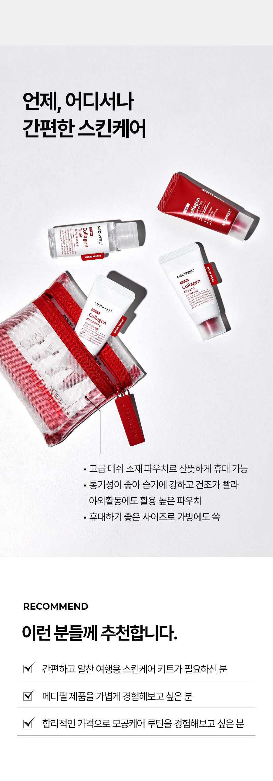 메디필(MEDIPEEL)은 피부 전문가를 위한 에스테틱 솔루션으로 시작한 브랜드입니다. 단순한 스킨케어가 아닌 피부 고민을 근본적으로 개선하고, 피부의 건강한 변화를 이끌어 내는 체계적인 스킨케어 솔루션에 대해 끊임없이 연구하고 있습니다.