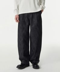 버티컬 슬러브 세미 벌룬 데님 팬츠 [블랙]