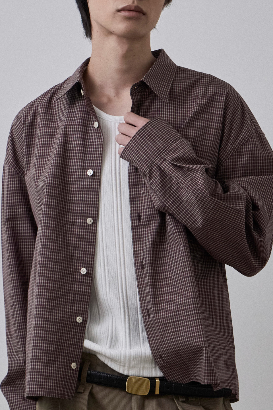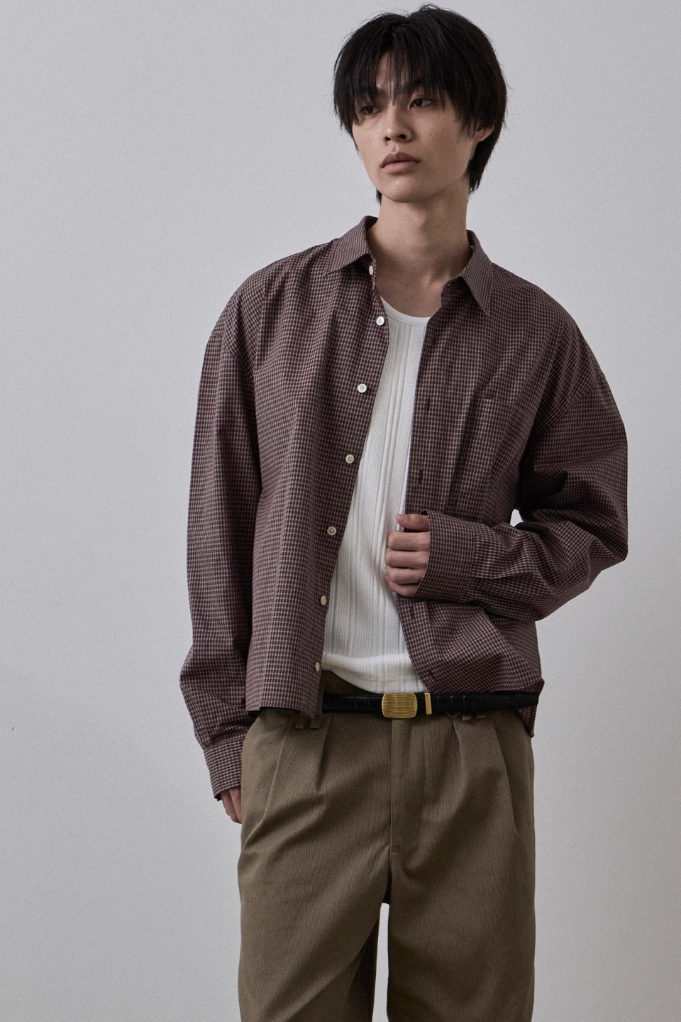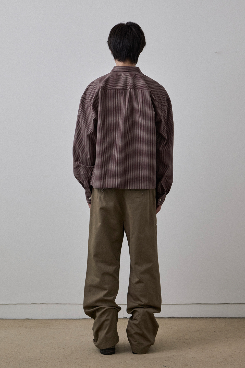 간결한 크롭 실루엣에 잔잔한 격자 구조의 미니멀 체크 패턴