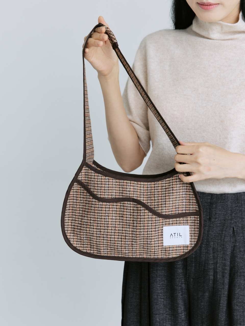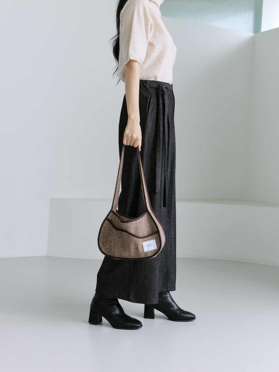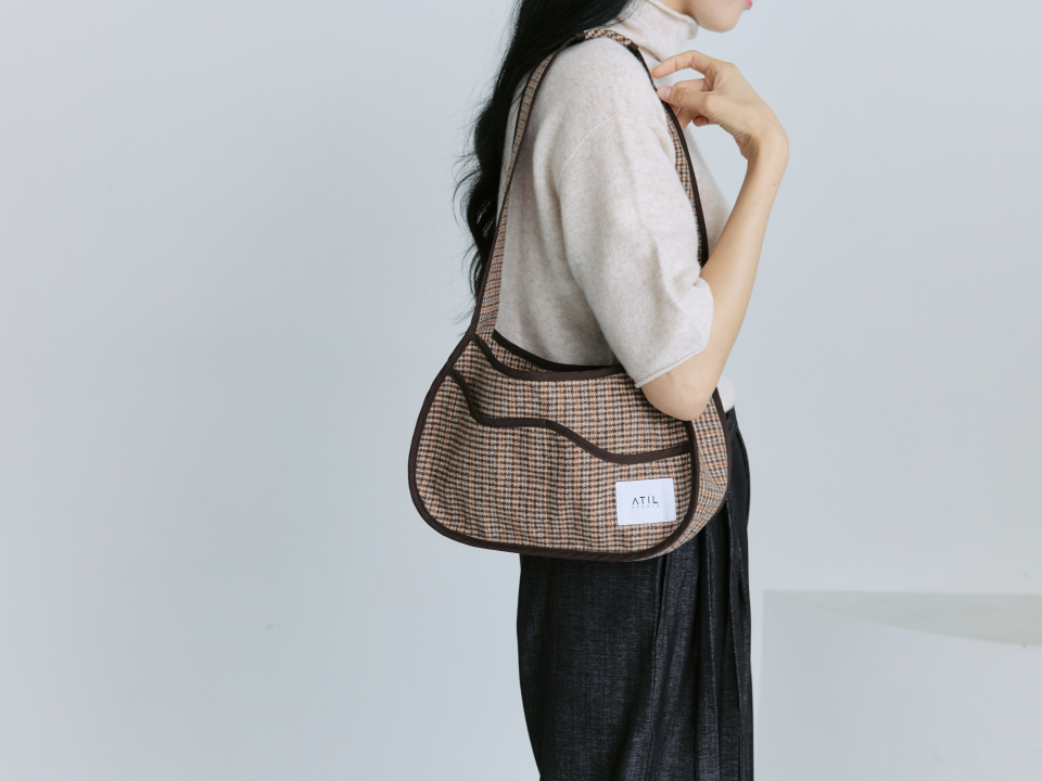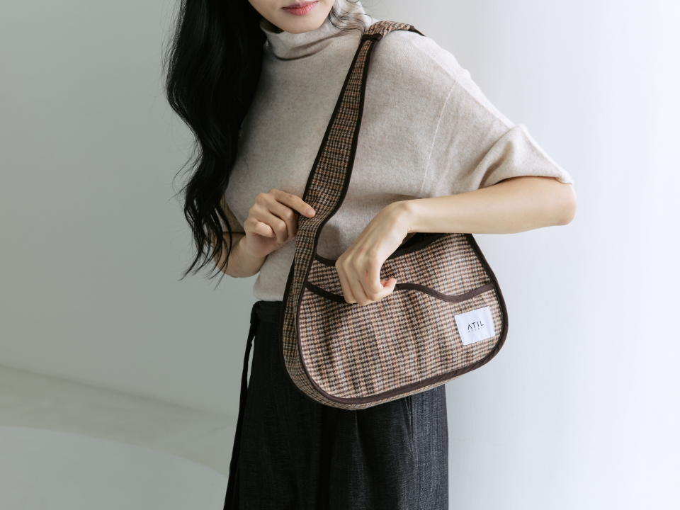 멜로우 체크 호보 숄더백 _ 브라운