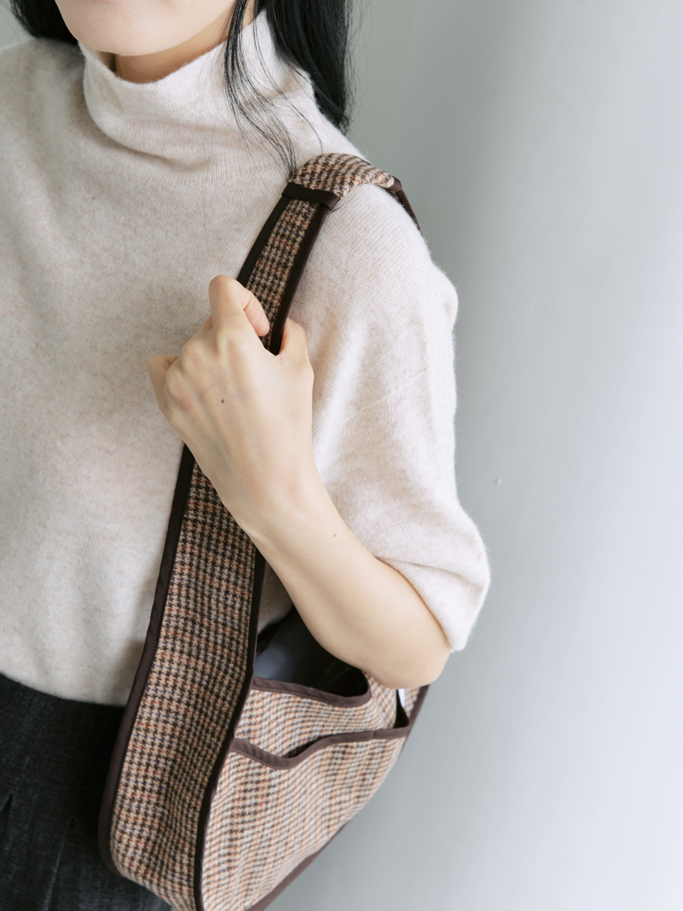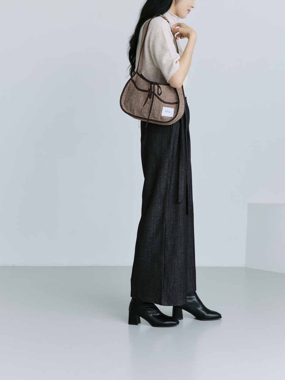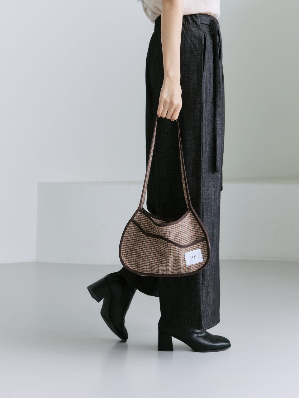 멜로우 체크 호보 숄더백 _ 브라운