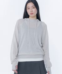 Sheer punching knit hoodie GREY