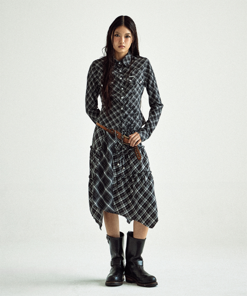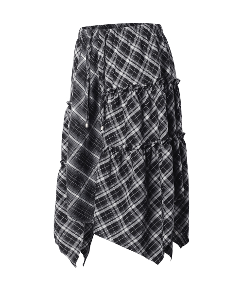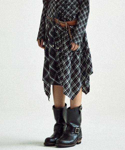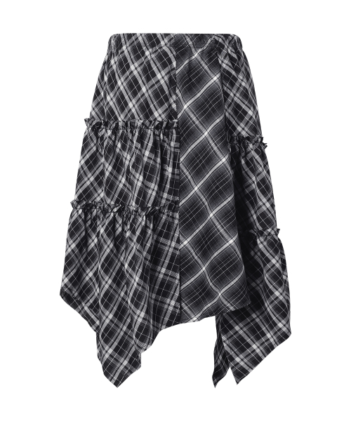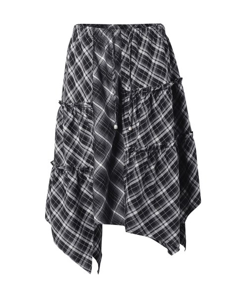UNBALANCE LAYERED CHECK SKIRT (W) BLACK