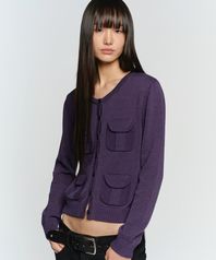 MULTI POCKET CROP CARDIGAN, PURPLE