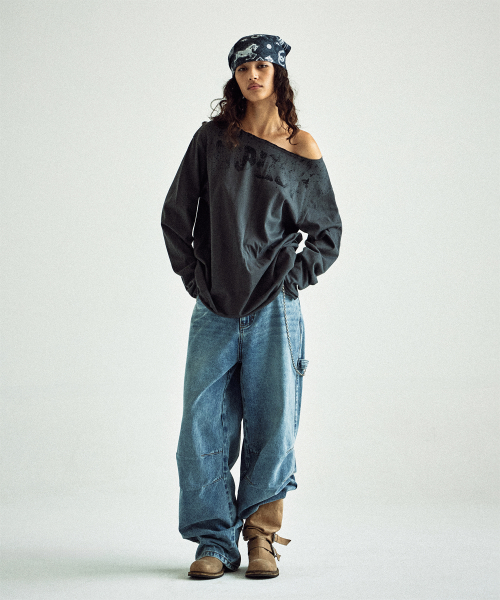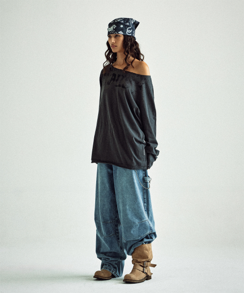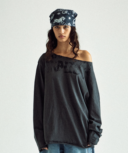 LOOSE FIT UNBALANCE LS TEE(W) CHARCOAL