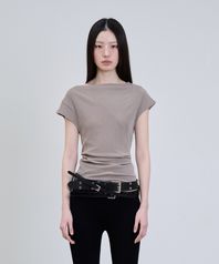 Cap Sleeve Curved T-Shirt_Khaki Beige