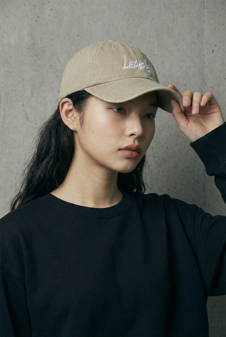 빈티지 워시드 캘리그래피 볼캡[베이지]