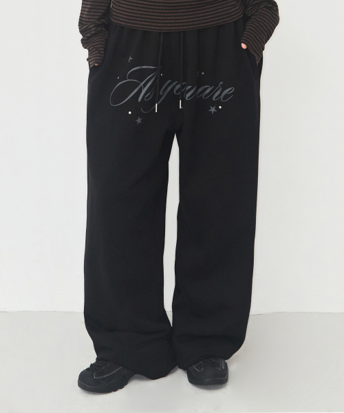 AU 레터링 롱 스웻 팬츠 블랙