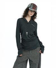 헨리 후드 롱 슬리브 탑 그레이