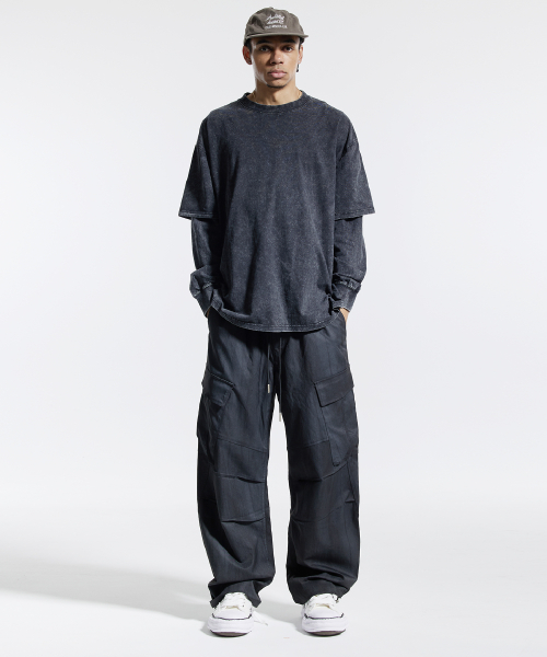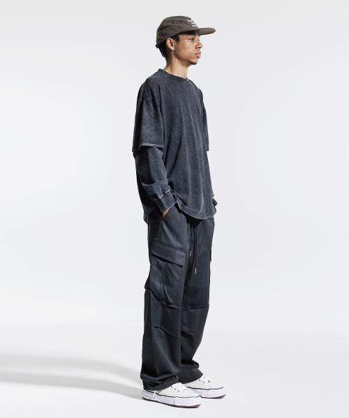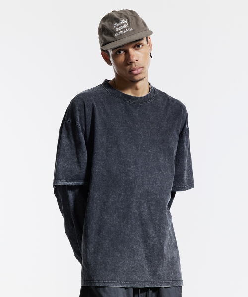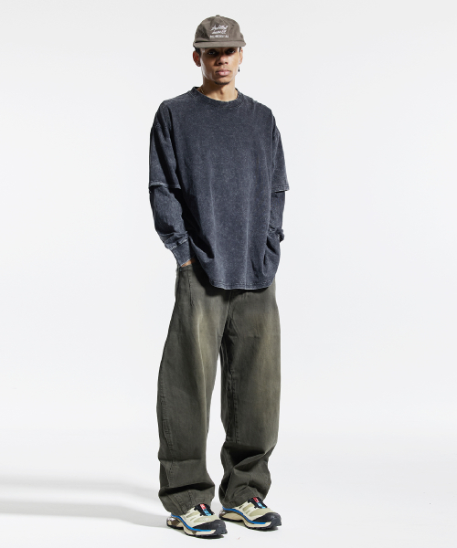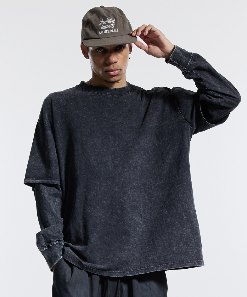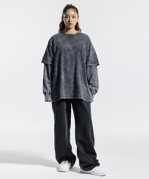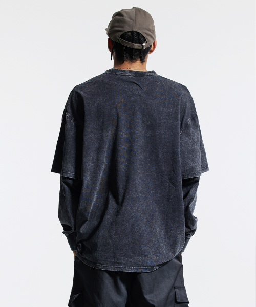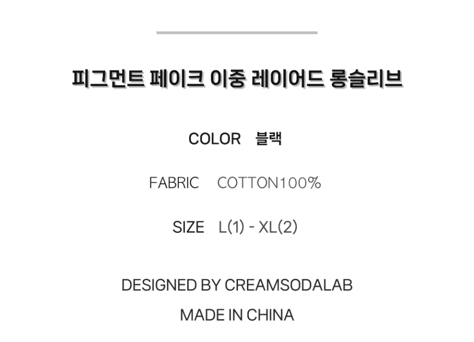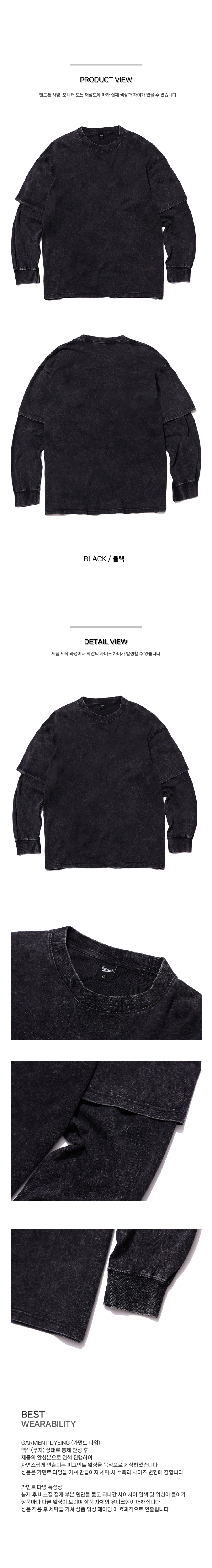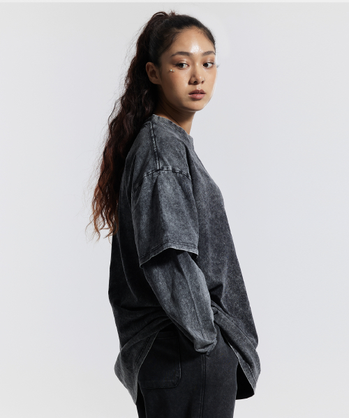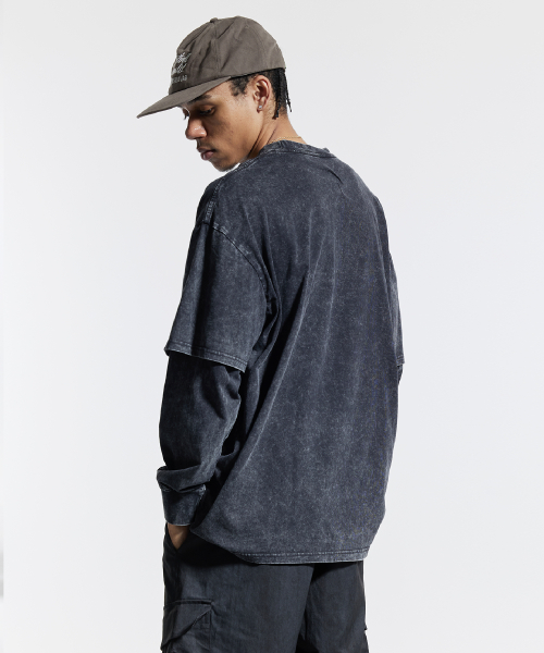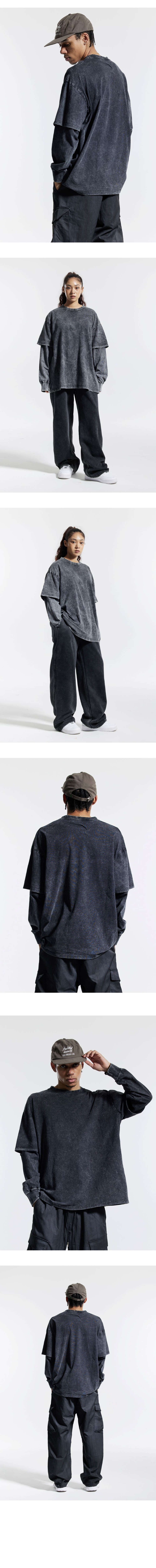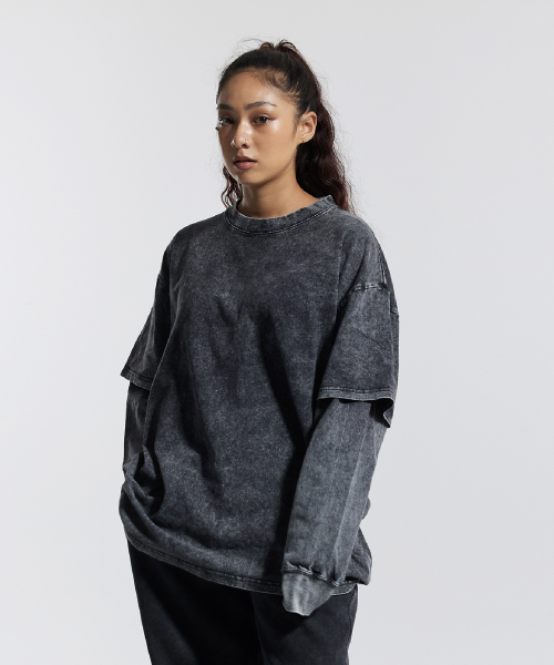 피그먼트 페이크 이중 레이어드 롱슬리브 블랙