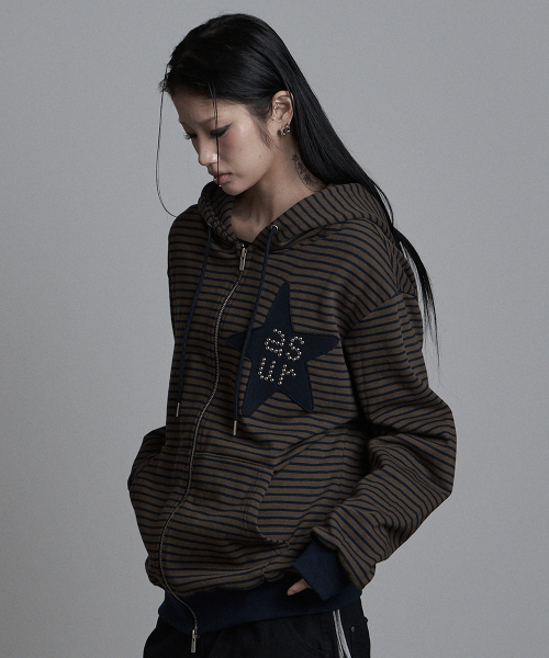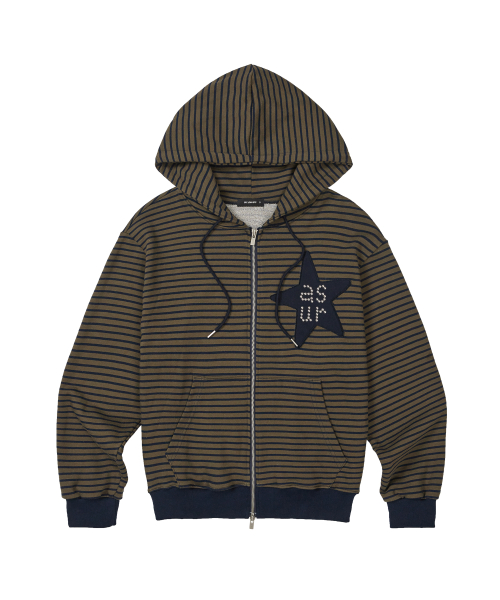 스타 패치 오버핏 후드 집업 네이비 카키