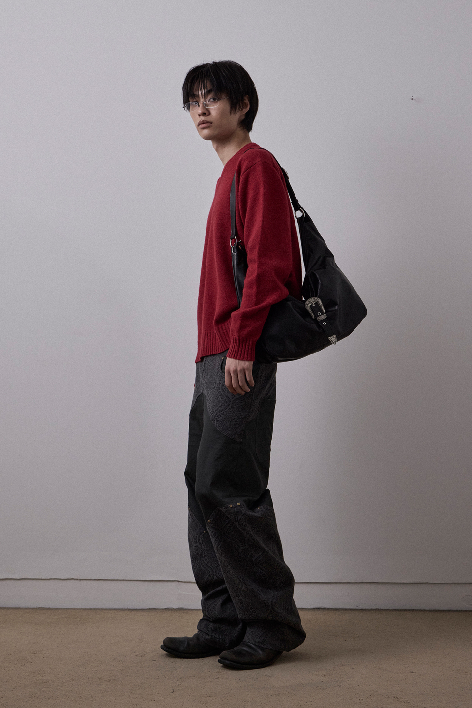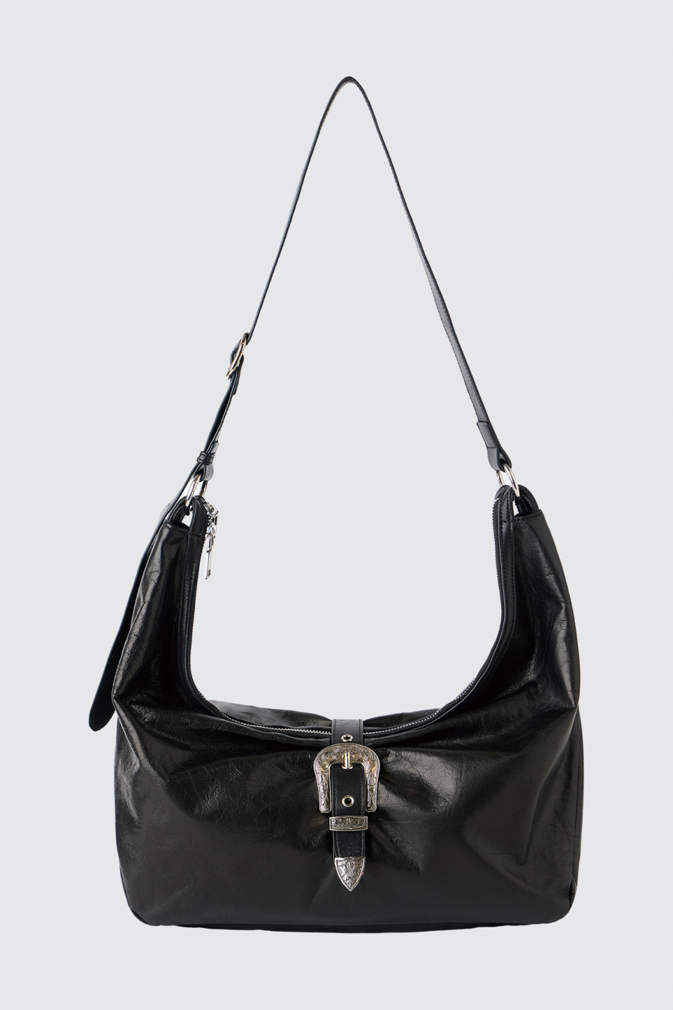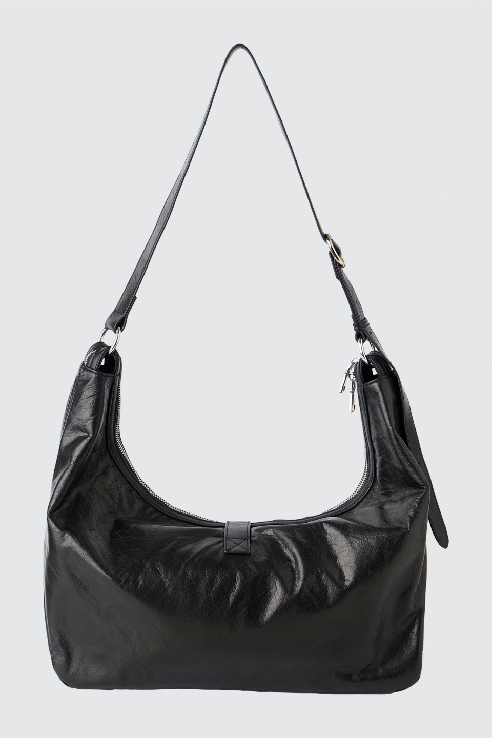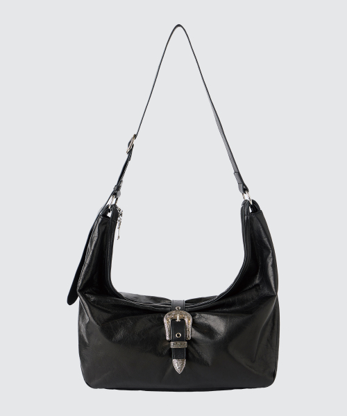 크랙 왁싱 처리된 소가죽 텍스처가 돋보이는 모던한 무드의 숄더백
