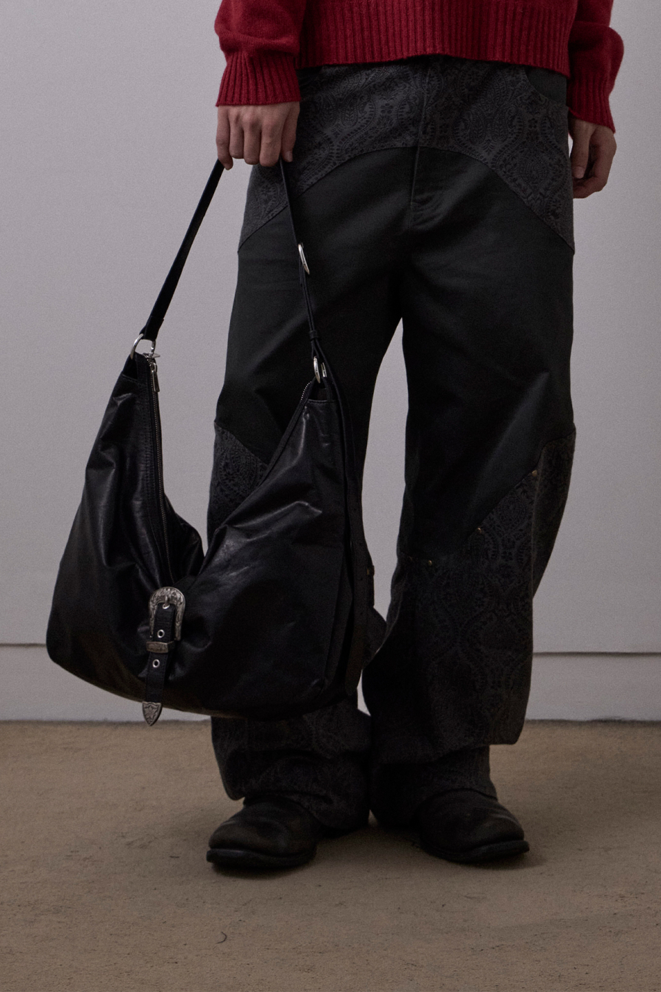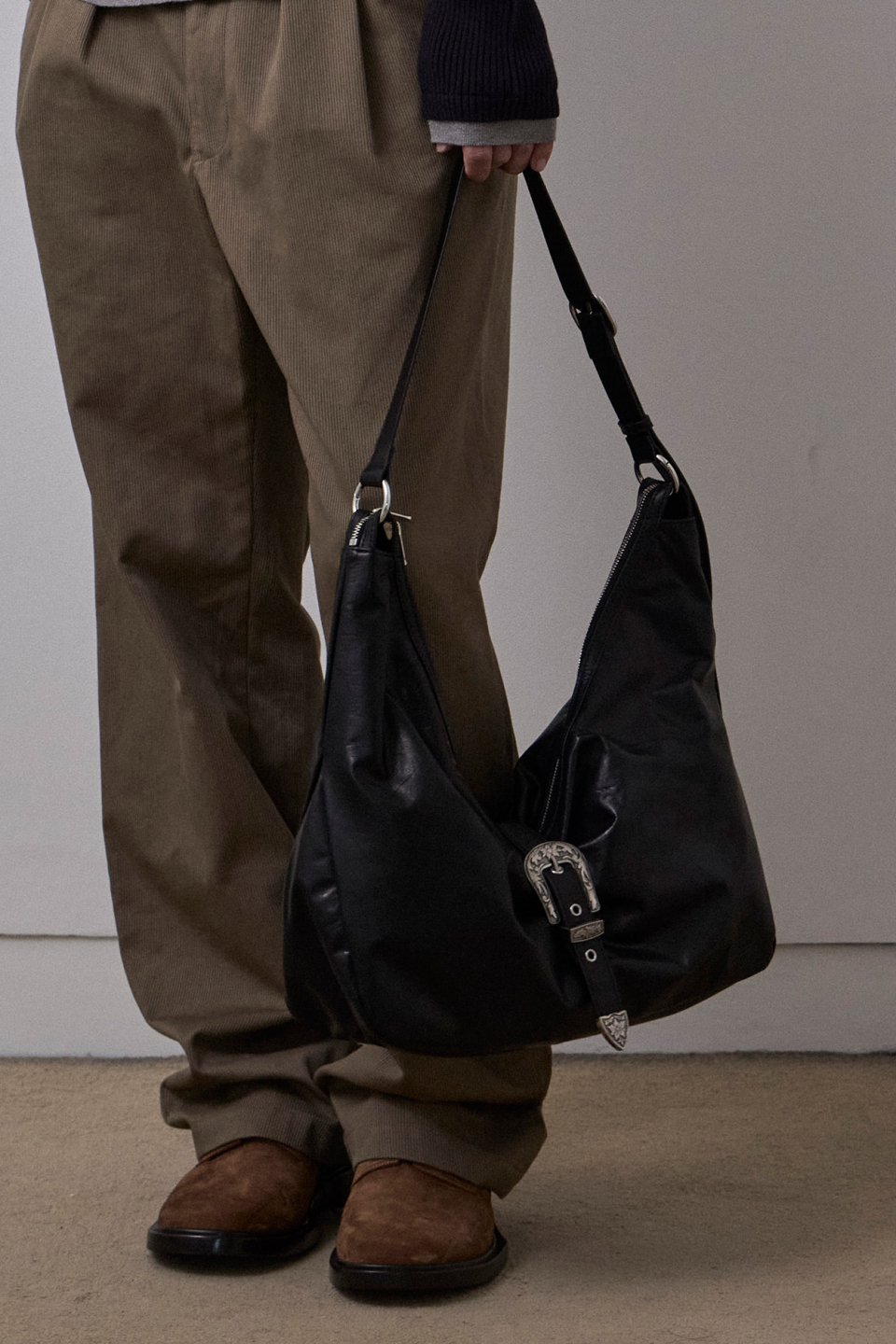 웨스턴 무드의 실버 메탈 버클 디테일