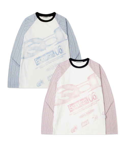 스트라이프 틸티드 ESCF 로고 콜라주 롱슬리브 [2color]