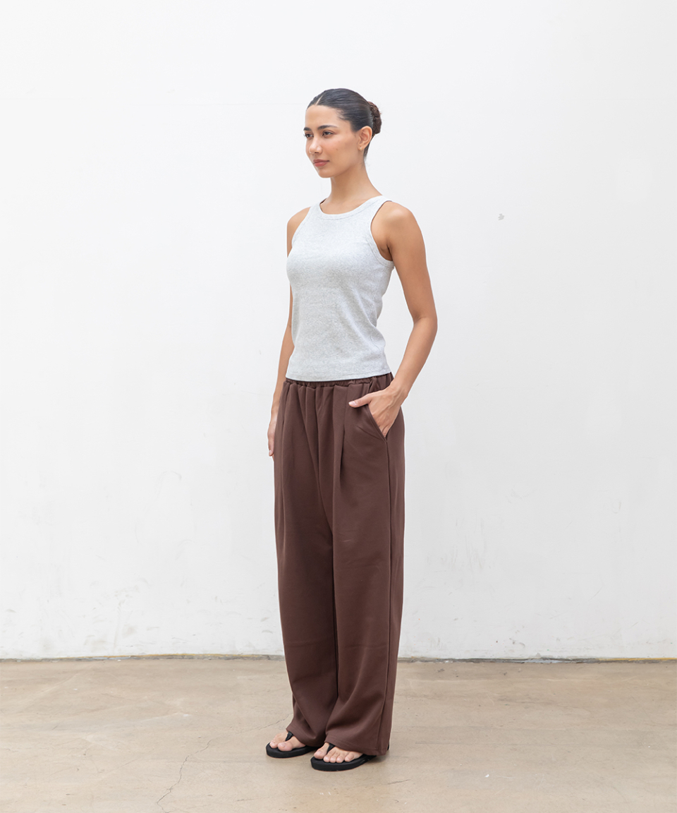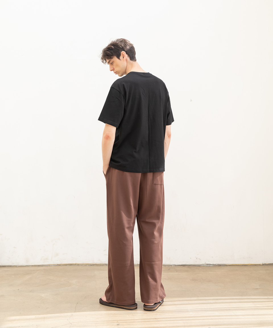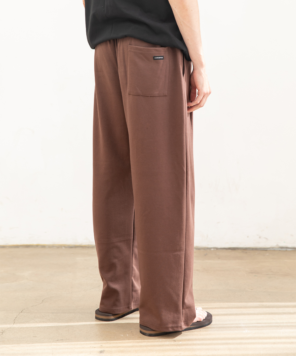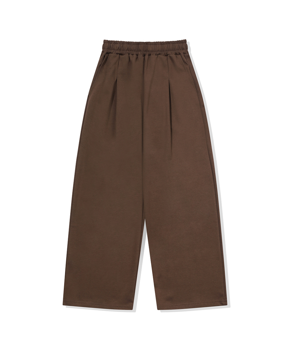 포인트 로고 핀턱 와이드 스웨트 팬츠 [브라운]