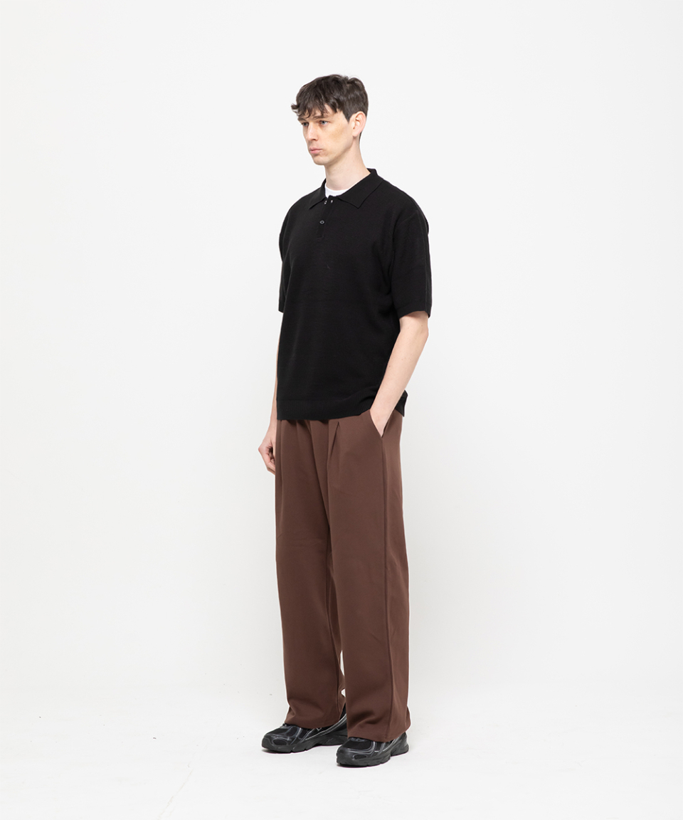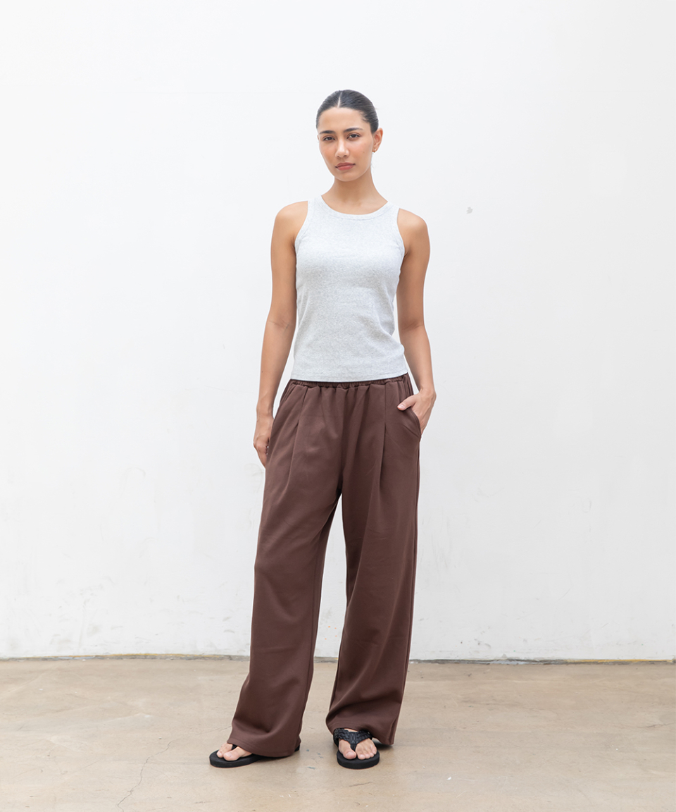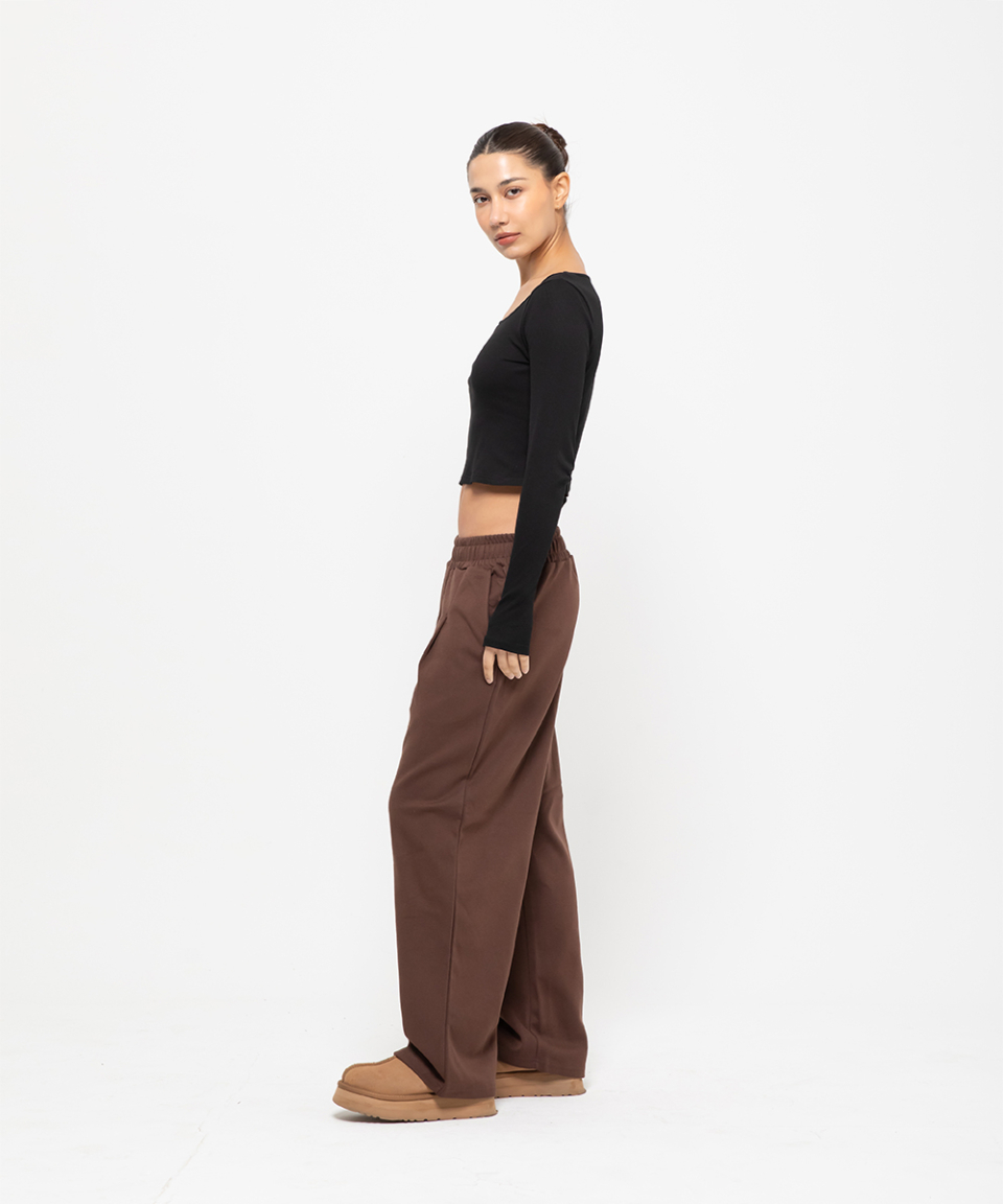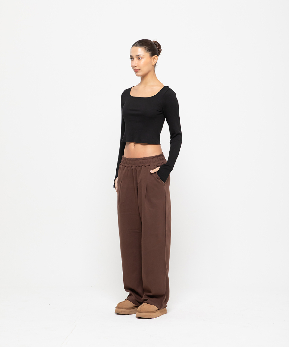 포인트 로고 핀턱 와이드 스웨트 팬츠 [브라운]