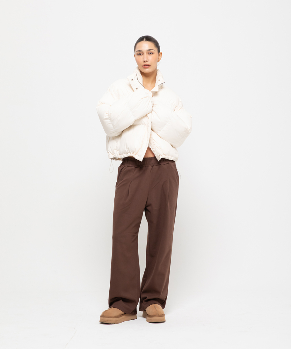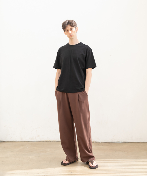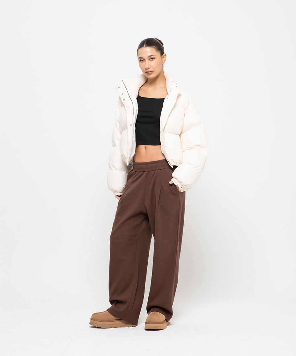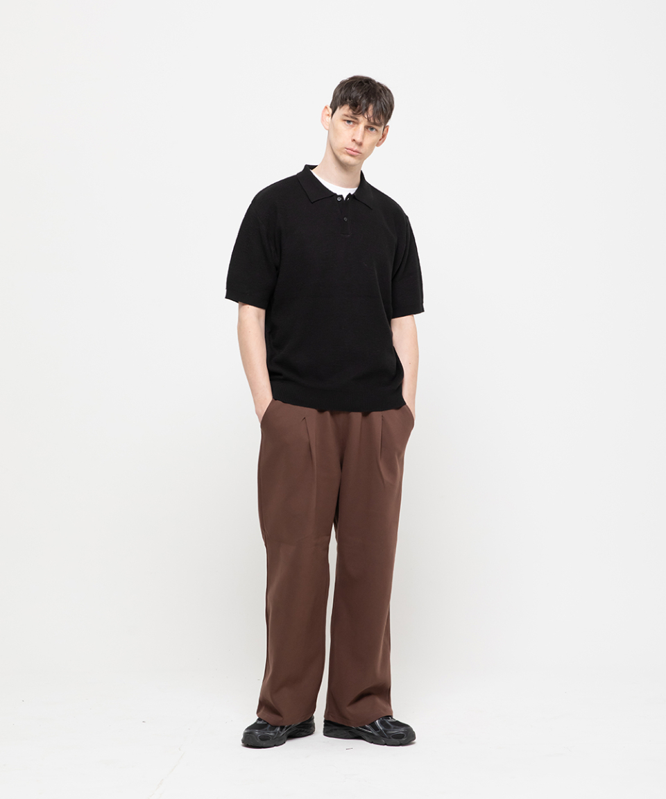 포인트 로고 핀턱 와이드 스웨트 팬츠 [브라운]