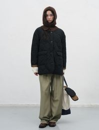 머플러 세트 노카라 퀼팅 자켓 [BLACK] / WBE3L07516