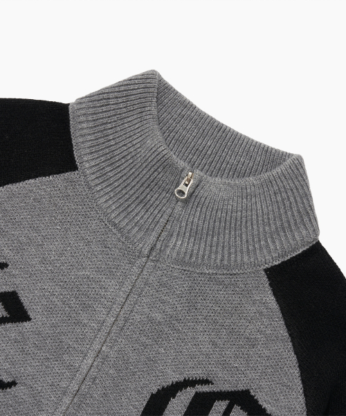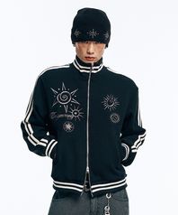 자수 트랙 집업 니트-블랙