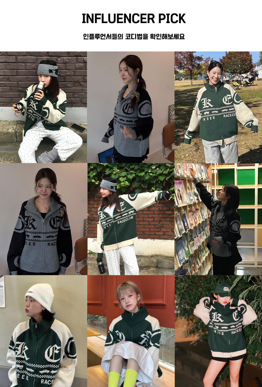 레이싱 KE 오버핏 니트 집업[그린]