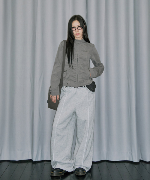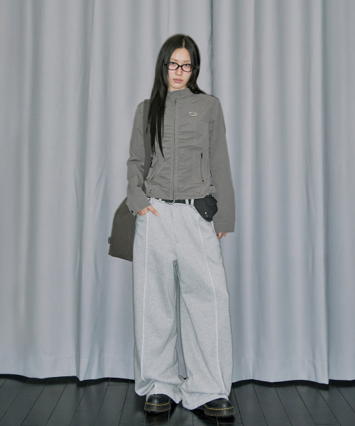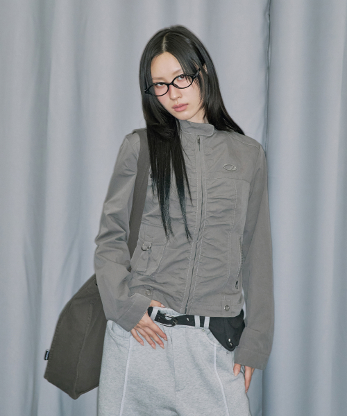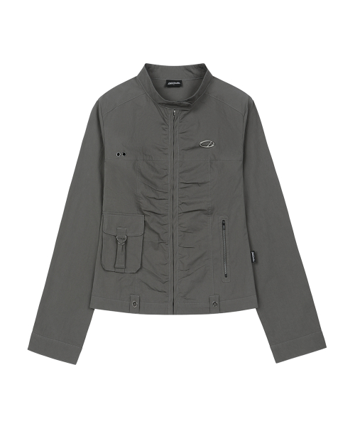 시그니처 셔링 코튼 바이커 자켓 - CHARCOAL