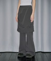 드레이프 핀턱 미디 스커트 팬츠 세트 - CHARCOAL