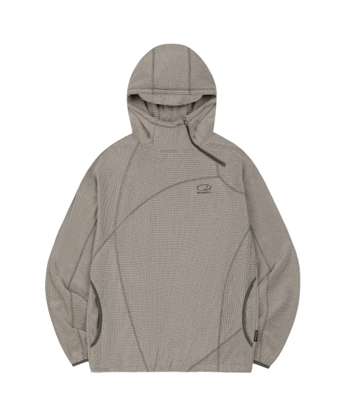 와플 커버 스티치 후드 티셔츠 - BEIGE