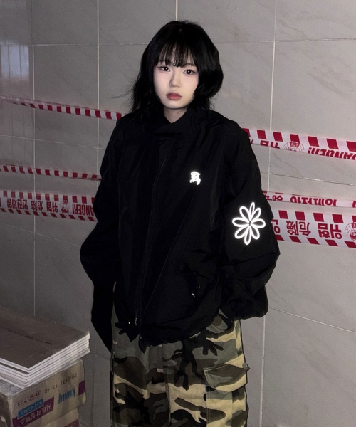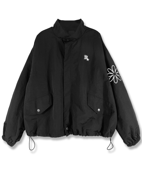 슬리브 프린트 윈드브레이커 자켓_블랙