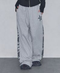 스타 패치 배색 스웻 팬츠 멜란지