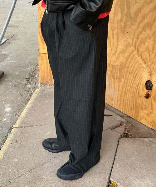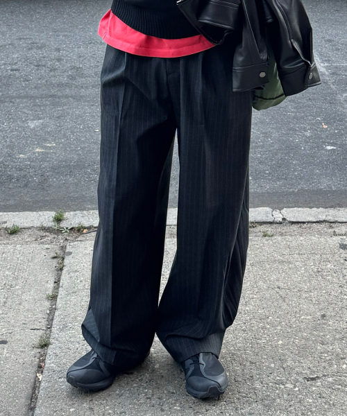 Info - 여유로운 기장감으로 다양한 스타일링 가능 - 폭넓게 매칭 가능한 블랙,차콜 두 가지 컬러 출시 - 부담 없는 커브드 핏으로 누구나 활용 가능 - 밑단에 핀턱 디테일과 스트라이프 패턴으로 유니크하면서도 깔끔한 스타일링 가능 Size : M, L, XL Color : Black, Charcoal
