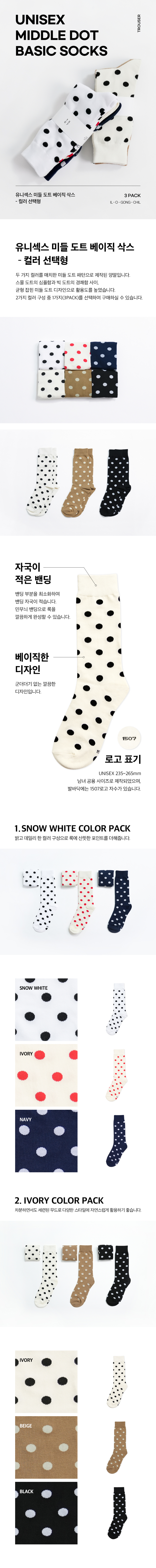 [3PACK] 1507 유니섹스 미들 도트 베이직 삭스 - 컬러선택형