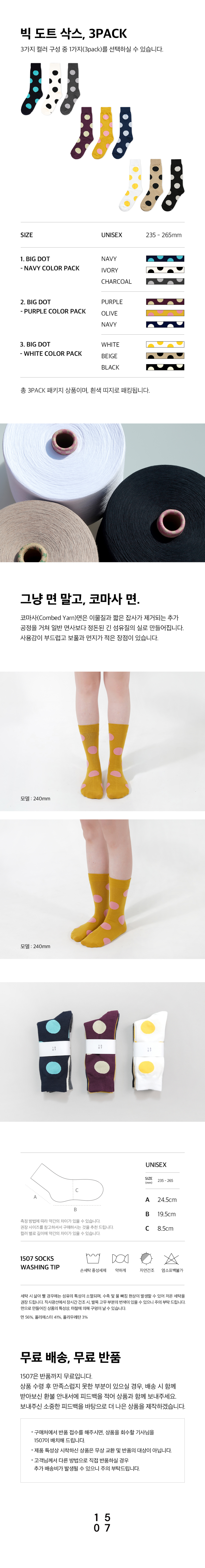 [3PACK] 1507 유니섹스 빅 도트 베이직 삭스 - 컬러선택형
