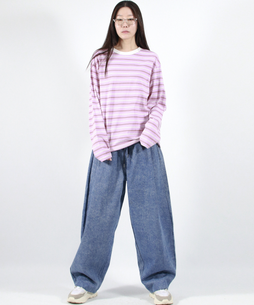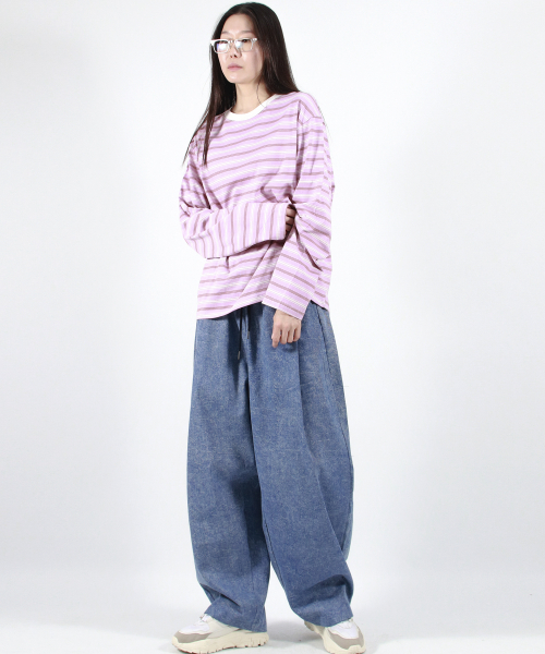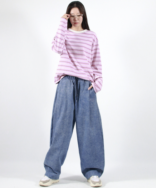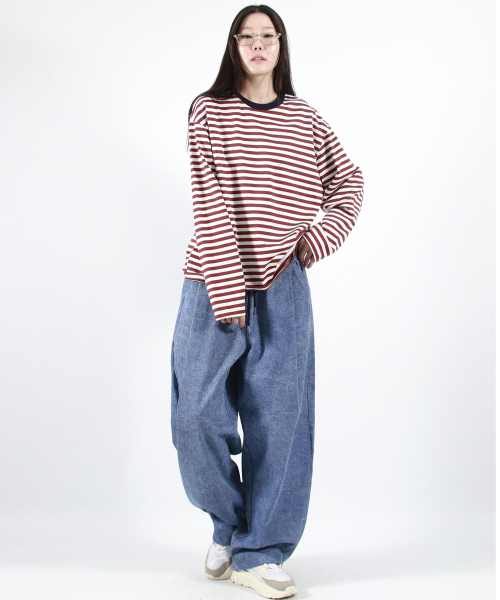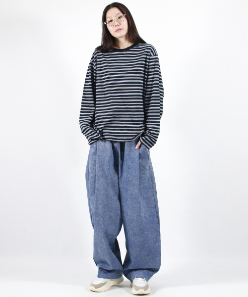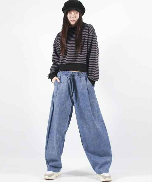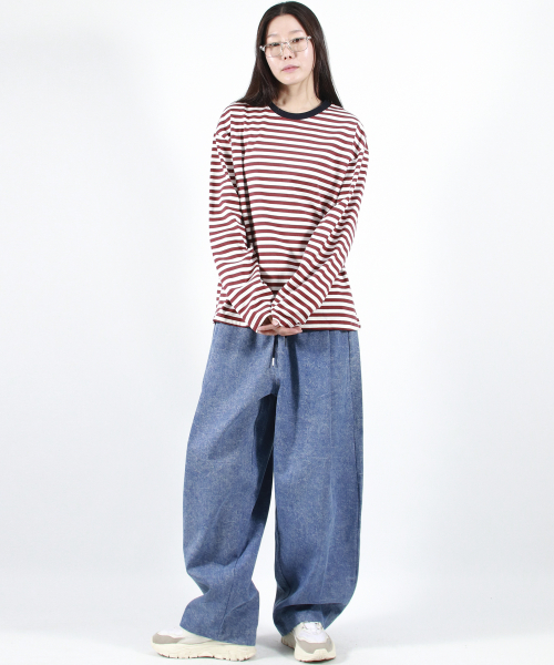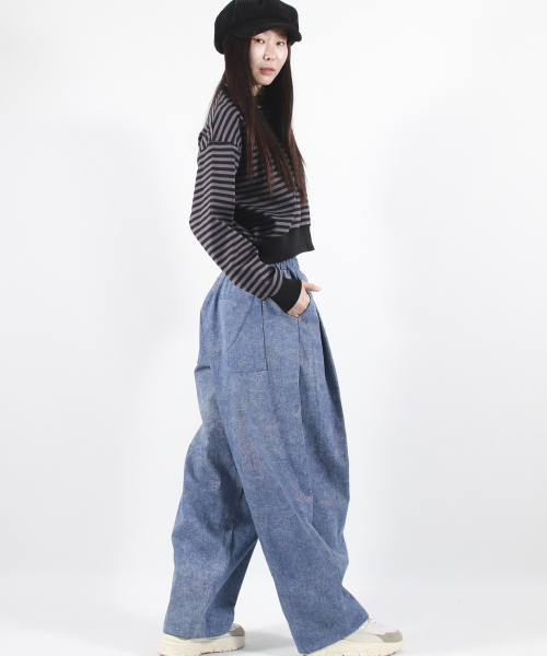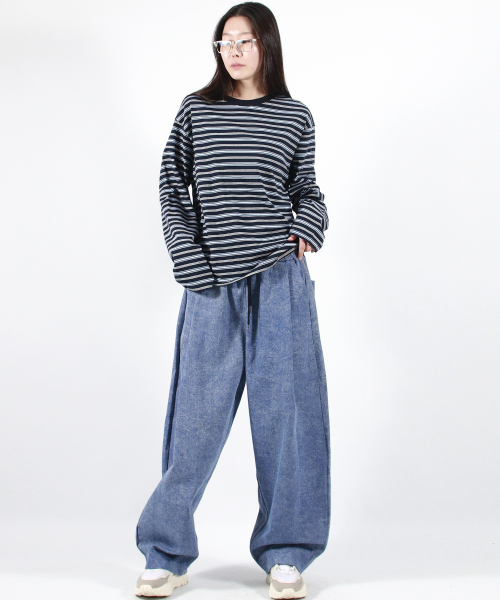 - 빈티지한 스톤 워싱 처리로 내추럴한 무드가 돋보이는 츠카노 와이드 팬츠입니다.