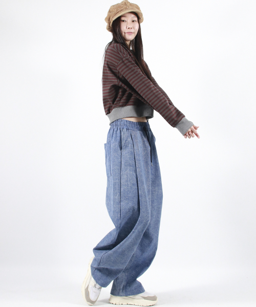 - 허리 밴딩과 사이즈 조절 면끈 디테일로 편안한 착용감을 제공합니다.