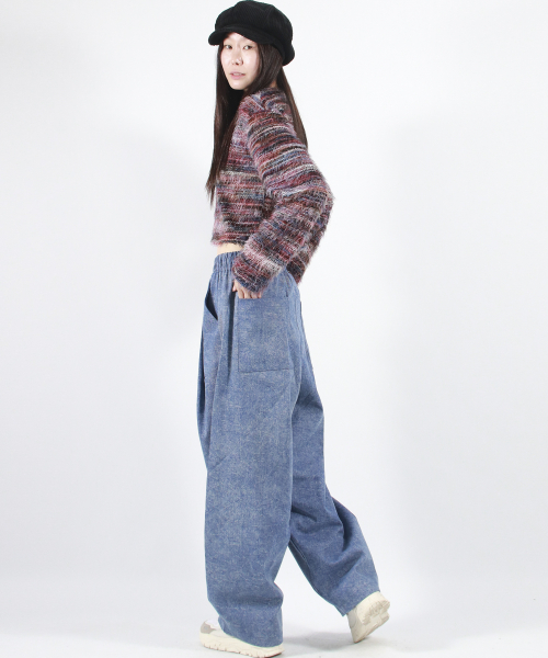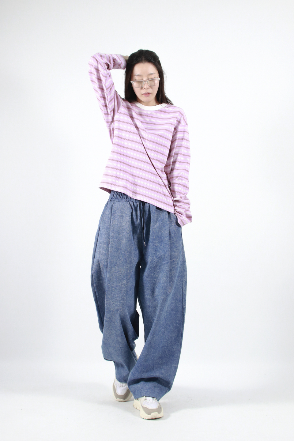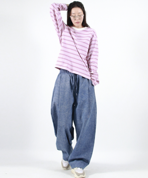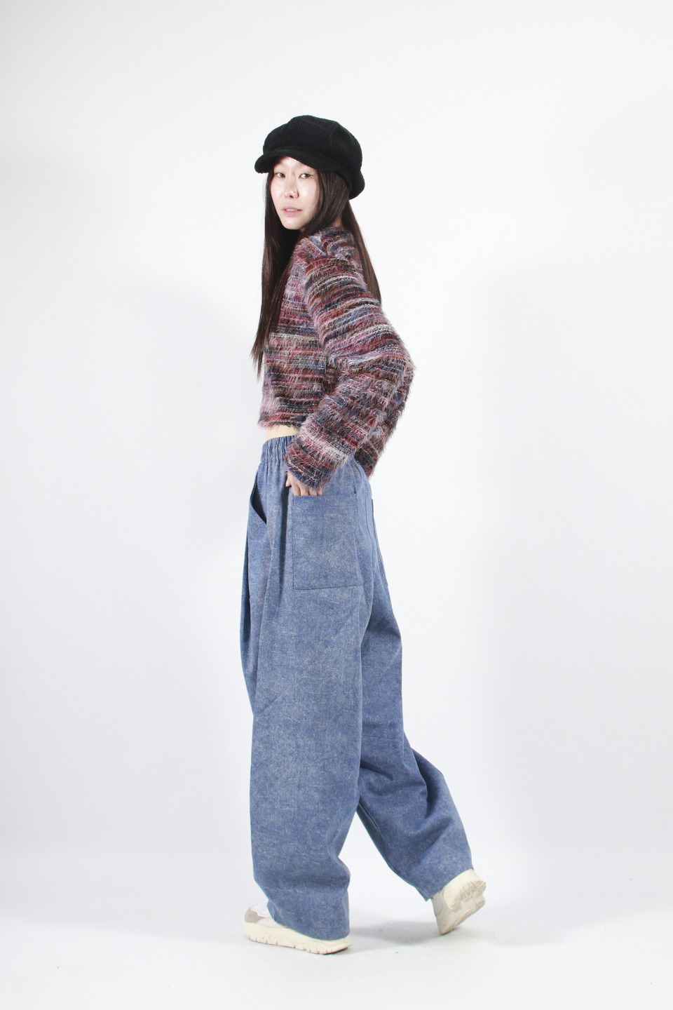 L: 총장 106cm / 허리단면 34.5cm / 엉덩이단면 54.5cm / 허벅지단면 42.5cm / 밑위 35cm / 밑단단면 24cm