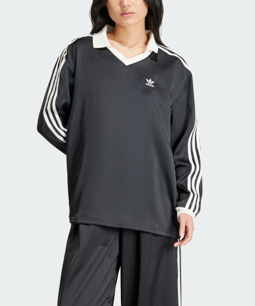 "새틴으로 마무리된 편안한 디자인을 선보이는 넉넉하고 럭셔리한 아디다스 티셔츠를 만나보세요. 폴로 칼라에서 부드럽게 떨어지는 느슨한 실루엣으로 착용하기 쉬운 스타일리시한 룩을 제안합니다. 빛에 반짝이는 소재가 움직임에 맞춰 은은한 광택감을 더해주고, 여유 있는 루즈 핏이 편히 쉴 수 있는 공간을 제공합니다. 팔을 관통하는 시그니처 3-스트라이프가 스포츠에 뿌리를 둔 대비색상 디테일을 살려줍니다. 70% 이상의 재생 소재로 제작된 제품입니다.