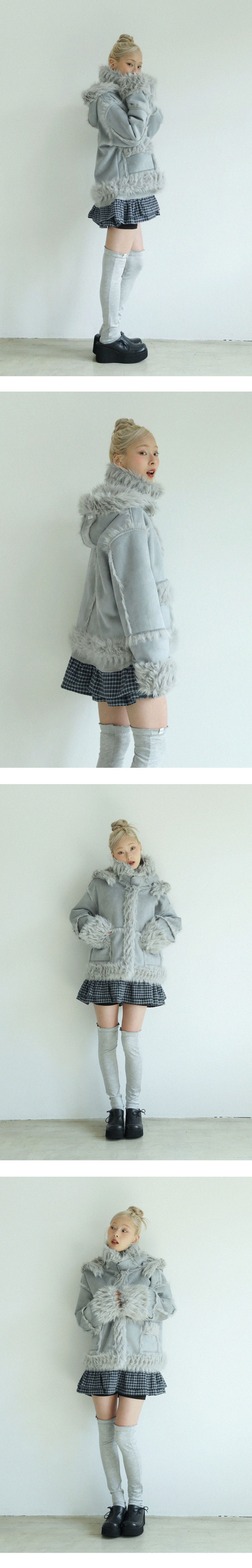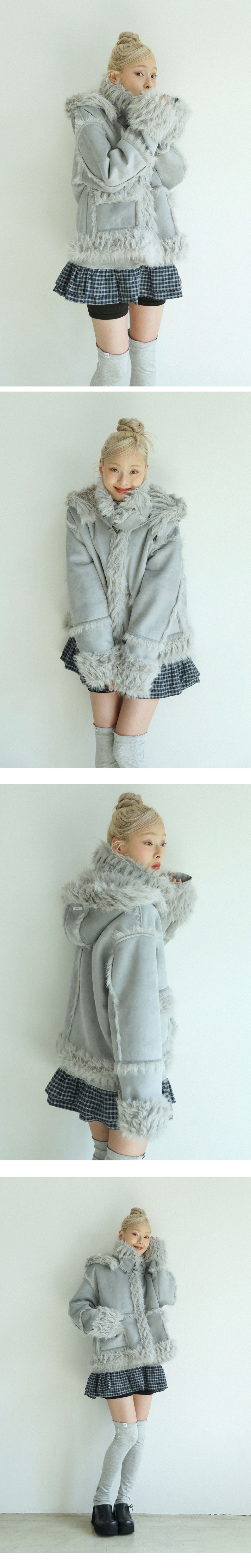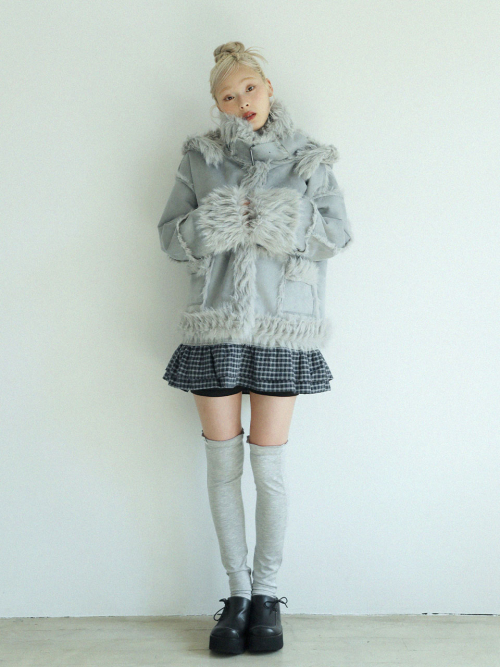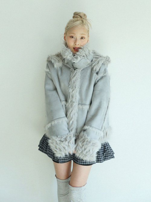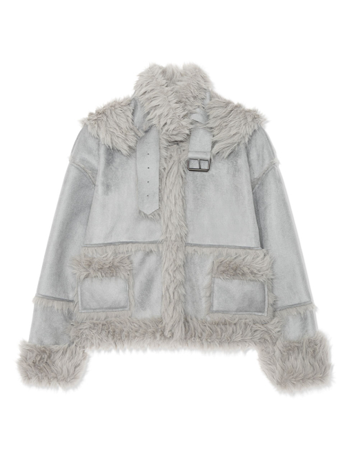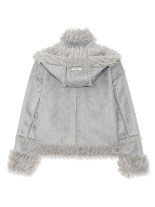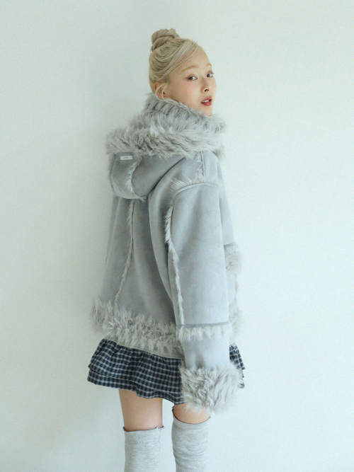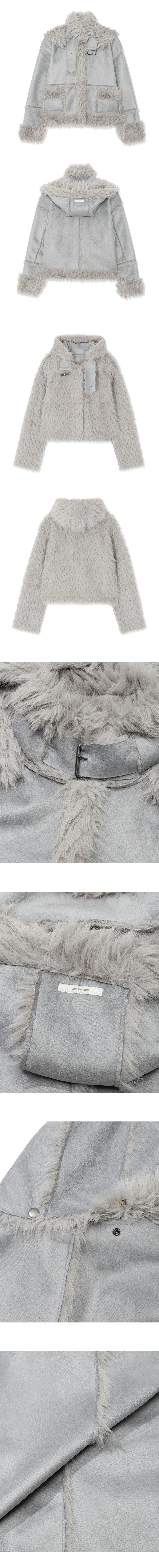 헤어리한 느낌의 페이크 퍼를 사용했으며, 리버시블로 착용 할 수 있는 시어링 자켓 입니다.