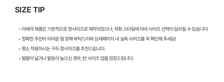 | 굽 높이 | 낮음 | 보통 | 높음 |