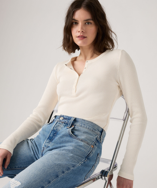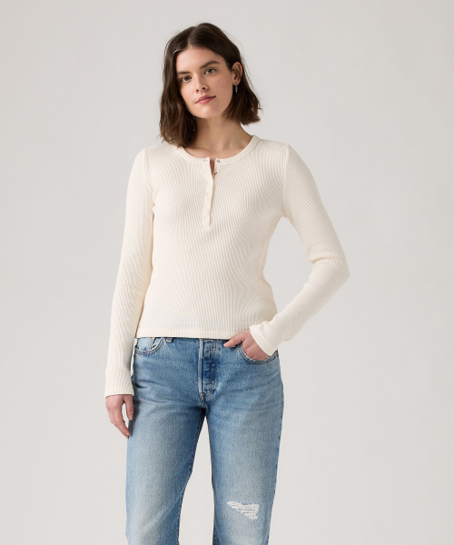 우먼 헨리넥 레이어드 롱슬리브 Beige