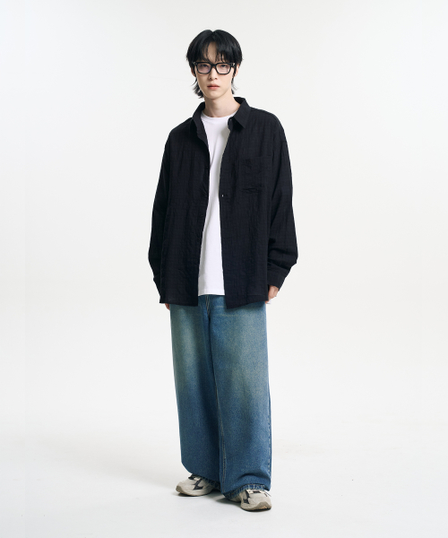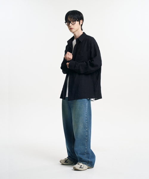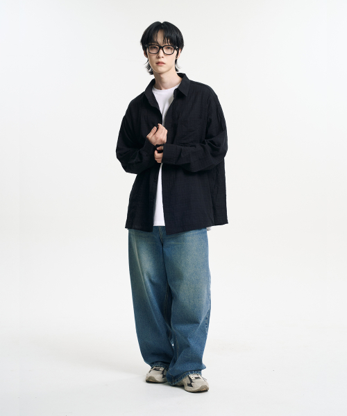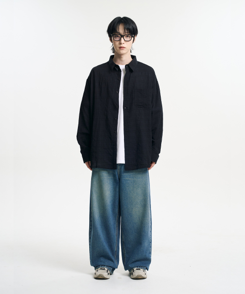 빈티지 그런지 체크 셔츠 블랙