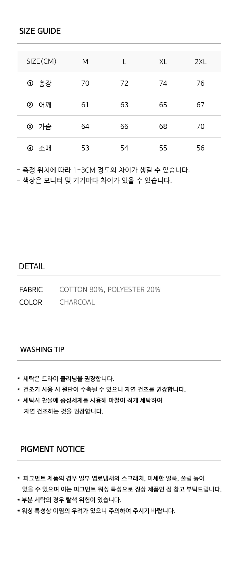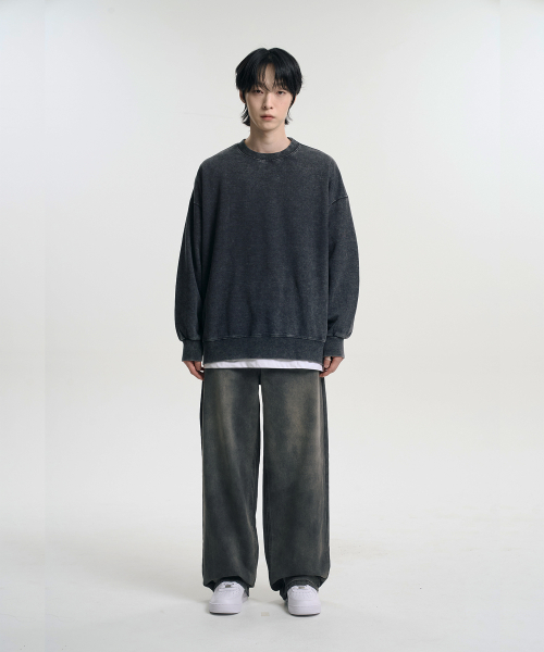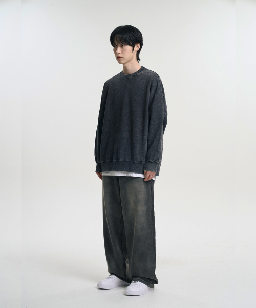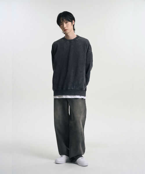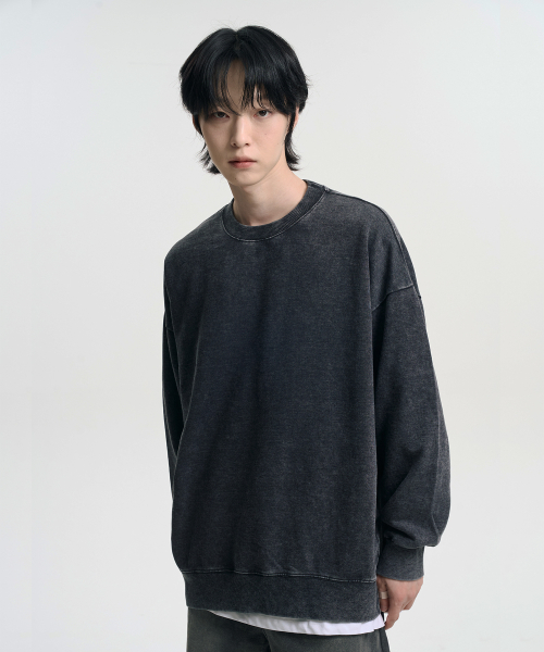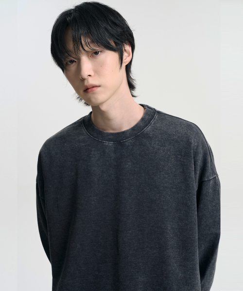 오버핏 피그먼트 맨투맨 스웨트셔츠 차콜