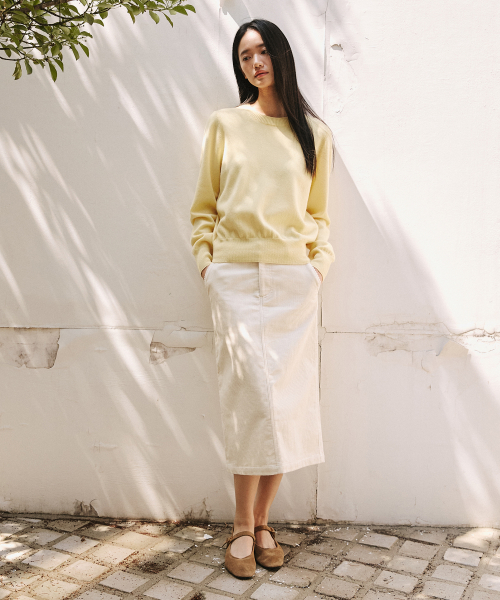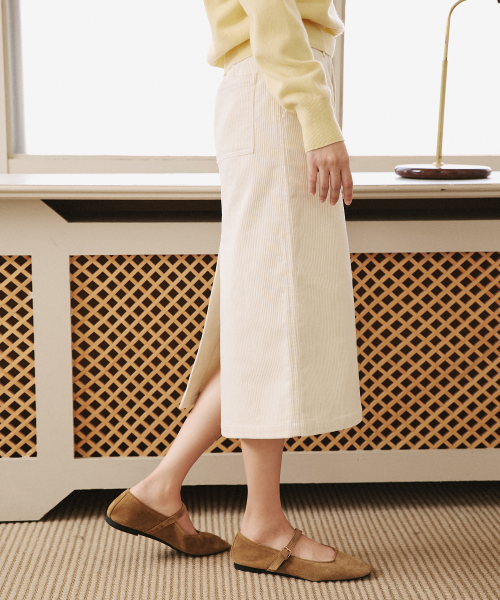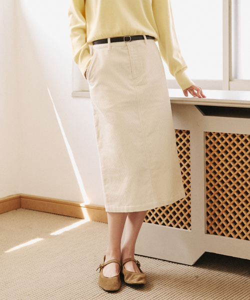 코듀로이 백 슬릿 미디 스커트 [아이보리]