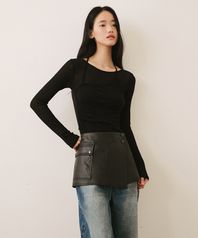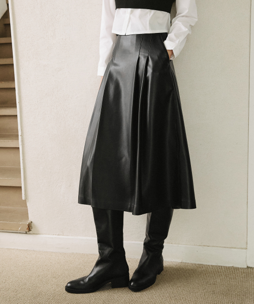 신세틱 레더 레이어드 스커트 [블랙]