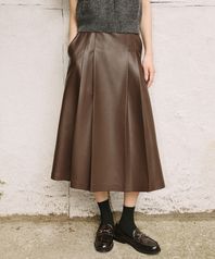 신세틱 소프트 레더 플레어 롱 스커트 [브라운]
