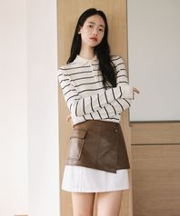 신세틱 레더 레이어드 스커트 [브라운]